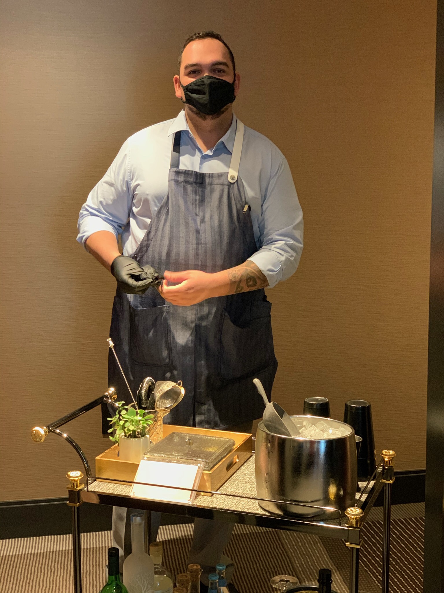About a half hour after check in we had a knock at the door and opened it to find a cocktail cart and our own private bartender who mixed us craft beverages from the hallway – the presentation was great, old school and so fun. We spent the late afternoon at 60 foot indoor pool, coming down in time to change for our amazing Italian dinner in the famous North End.