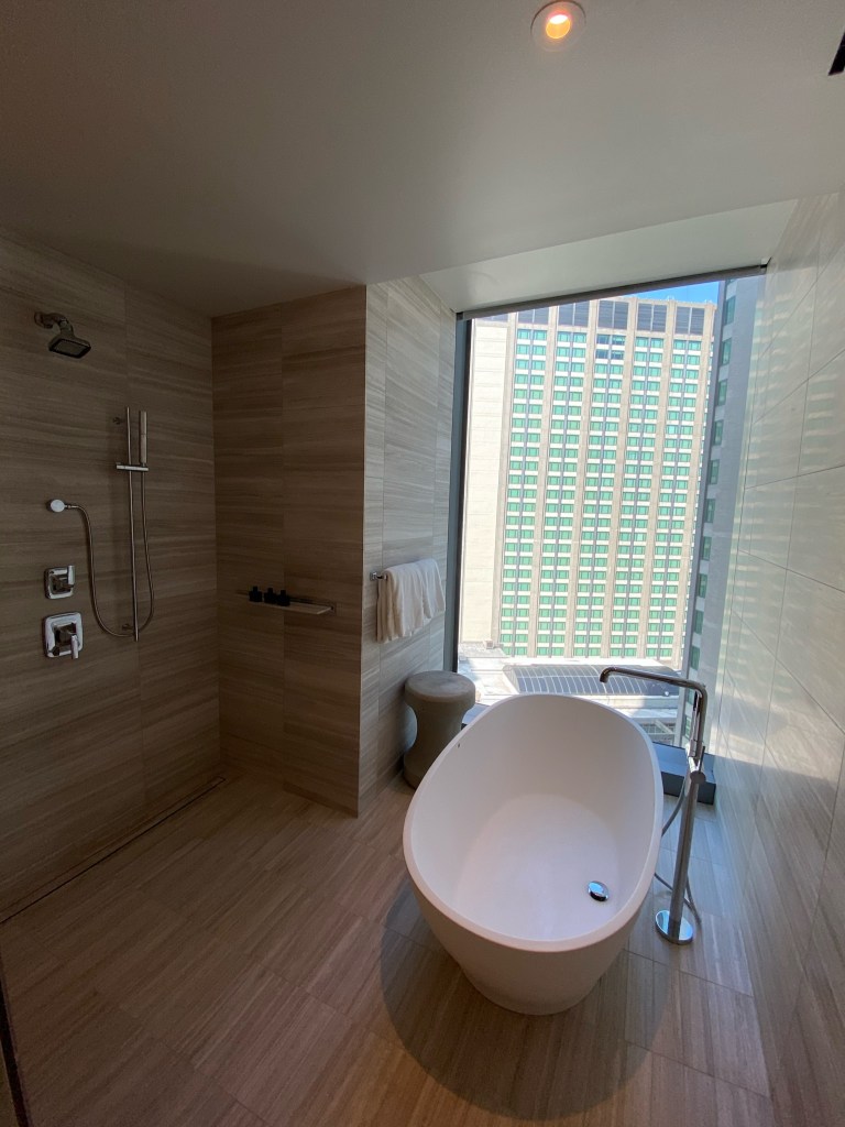 After our tour we checked into our next hotel – the fabulous Four Seasons One Dalton Street. This sleek, chic resort brings a winky bit of fun to the traditional five star luxury experience we all expect from the FS brand. Social distancing practices were evident upon check in with a mandatory questionnaire and temperature check for every person walking in the front door. After our warm greeting we we shown to our room – which a truly epic marble bathroom – the centerpiece being a massive white soaking tub with a city view! Outstanding!