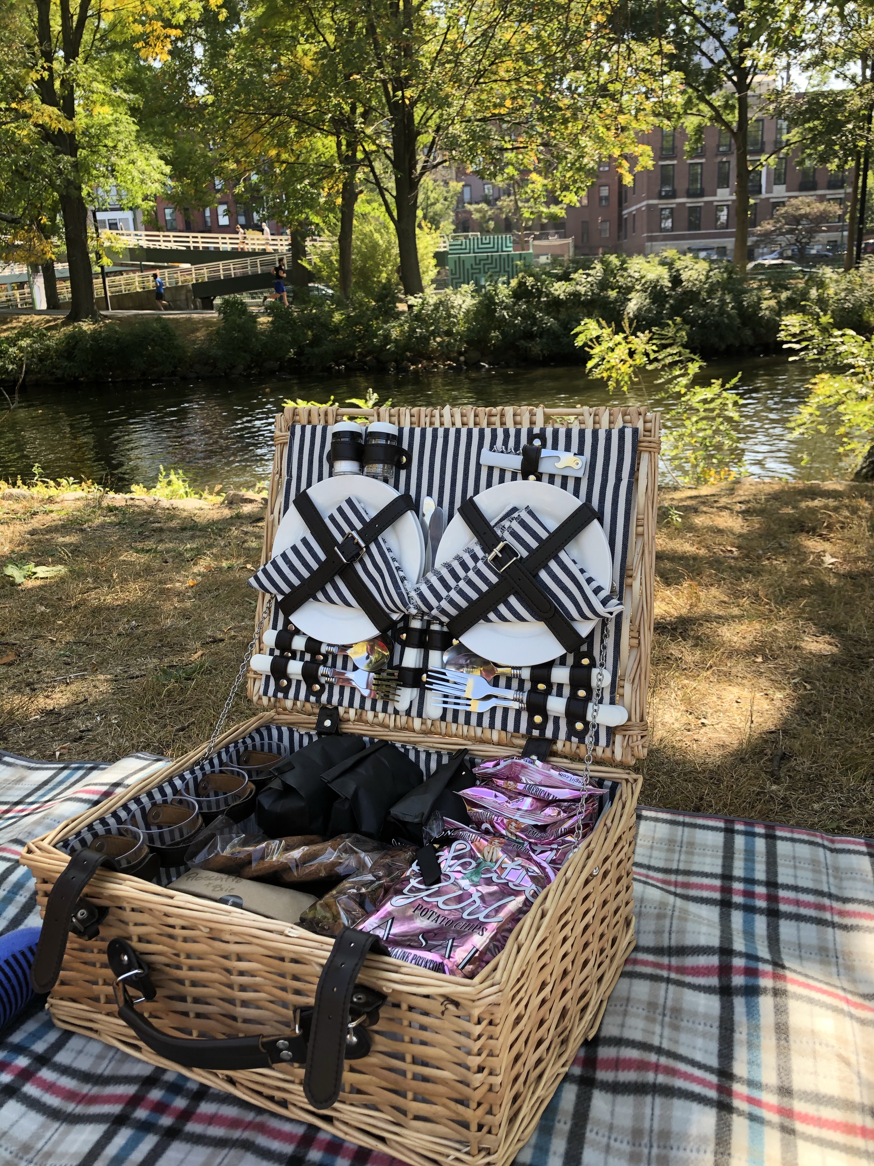 The next morning we enjoyed our Preferred Partner breakfast from room service, and headed to meet our amphibious Duck Boat – these super cool buses actually turn into boats and float up the Charles, giving you a coastal view of the city. Our tour guide was hilarious! After the tour we swung by the front desk and picked up a fall themed picnic basket – lovingly prepared by the chef at the Four Seasons. We strolled along the Esplinade until we found a spot under a willow tree, and enjoyed sunset views with our delicious charcuterie, and then spent the early evening strolling on Newbury Street and people watching.