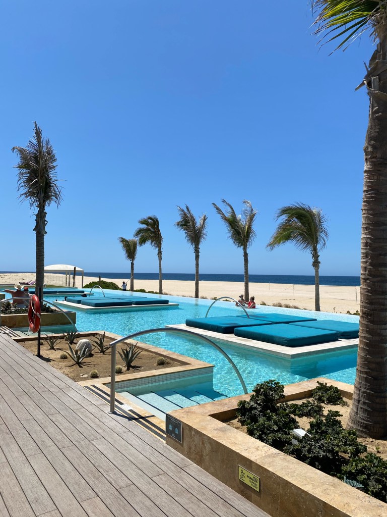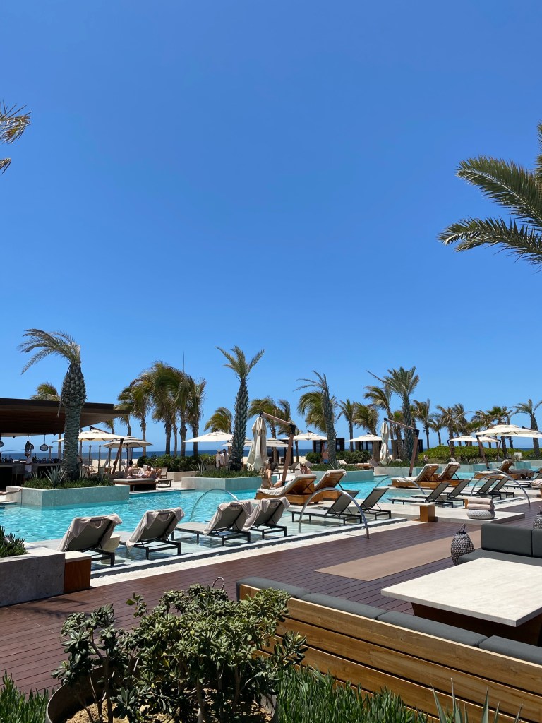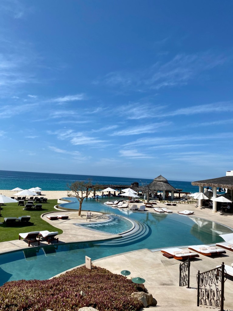 Chileno Bay, an Auberge Resort – Vibes for days – super young, on trend and stunning with an expansive multilevel infinity pool, this resort is perfect for a lively and social escape with family or friends. Family friendly – kids and teens areas are inviting, as is their private screening room. Bonuses of this resort – cool multi bedroom units with plunge pools, BBQs and kitchens – perfect for extended stays! Private access point to one of the most coveted public swimmable beaches on the coast, and guests can also access the most “exclusive” golf course in the area, only available to guests and residences of the Chileno Bay resort community.