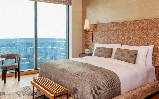 Behind the understated club-style entrance that makes you feel as if you’re sneaking into the cool kids club lies the open concept lobby which offers all the amenities of a destination resort seamlessly integrated into 32 stories of compact luxury. The blonde wood, black leather and subtle Texas elements winking around every corner vibe a total sense of place and somehow while make you feel that you’re somehow a lucky overnight guest of a friend who owns the sleekest townhouse in the city.
